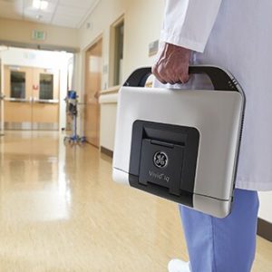 Vivid™ iq é um ultrassom cardiovascular compacto, mas poderoso. Você pode transportá-lo manualmente ou em seu carrinho com multiconector para transdutores aonde ele for necessário,2 … do laboratório de exames de eco à sala de cirurgia, … do hospital até uma localização rural.