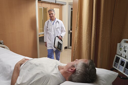 - Fornecemos a você um tablet móvel que permite que você se comunique diretamente com um especialista em aplicativos clínicos
